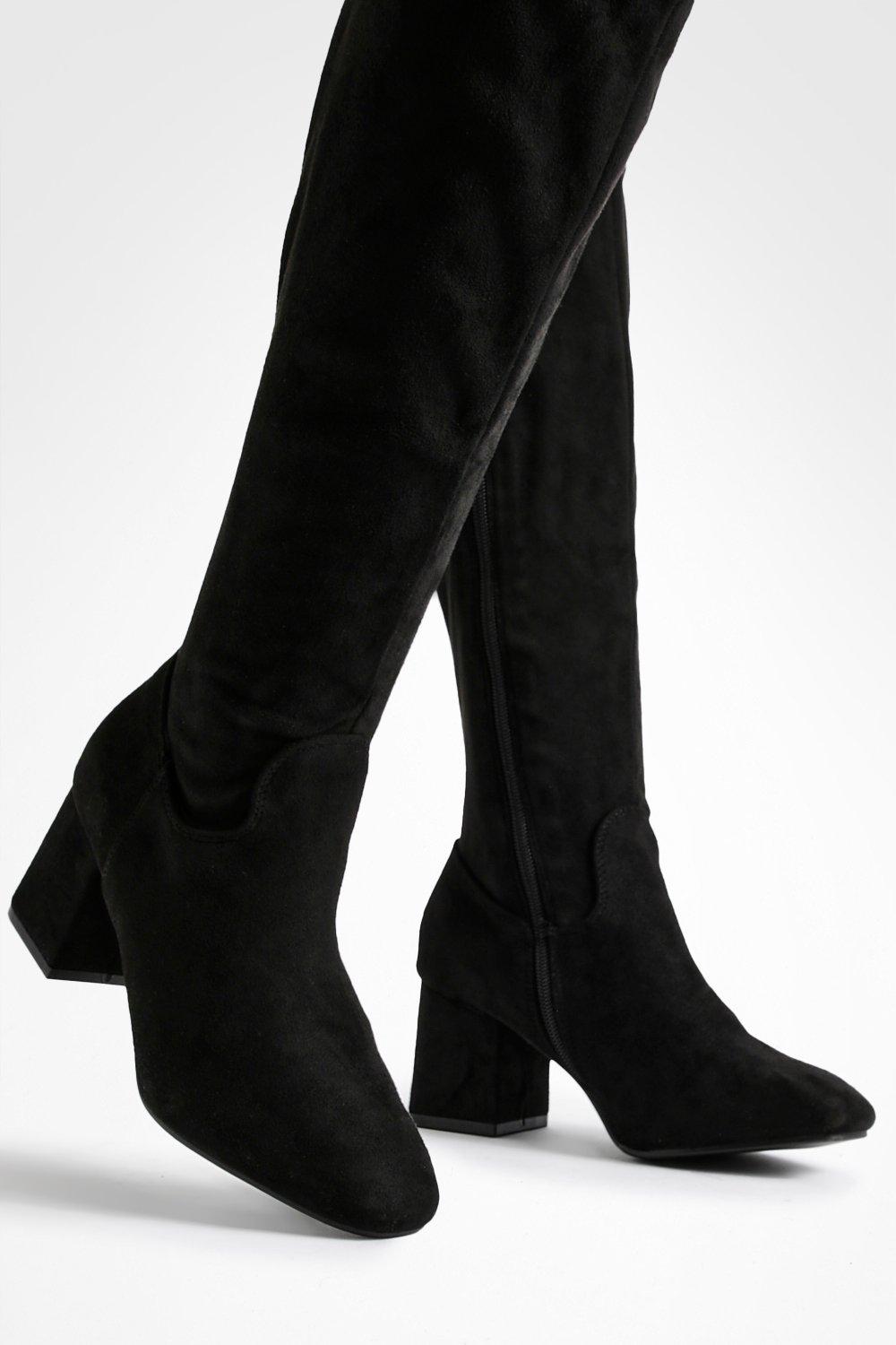 Stivali sopra il ginocchio con tacco a blocco boohoo